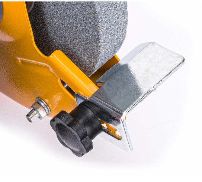 Erőteljes asztali köszörű otthoni használatra. Rezgésmentes működés, csiszolási pontosság, minőségi kidolgozás biztosítja a készülék hosszú élettartamát. A daráló fém házzal, állítható rögzítésekkel, szikravédő burkolatokkal van felszerelve.